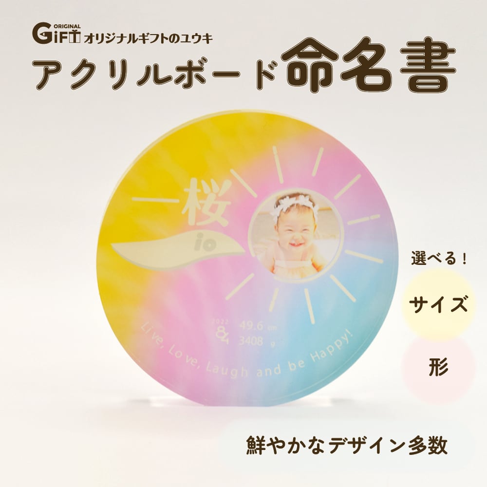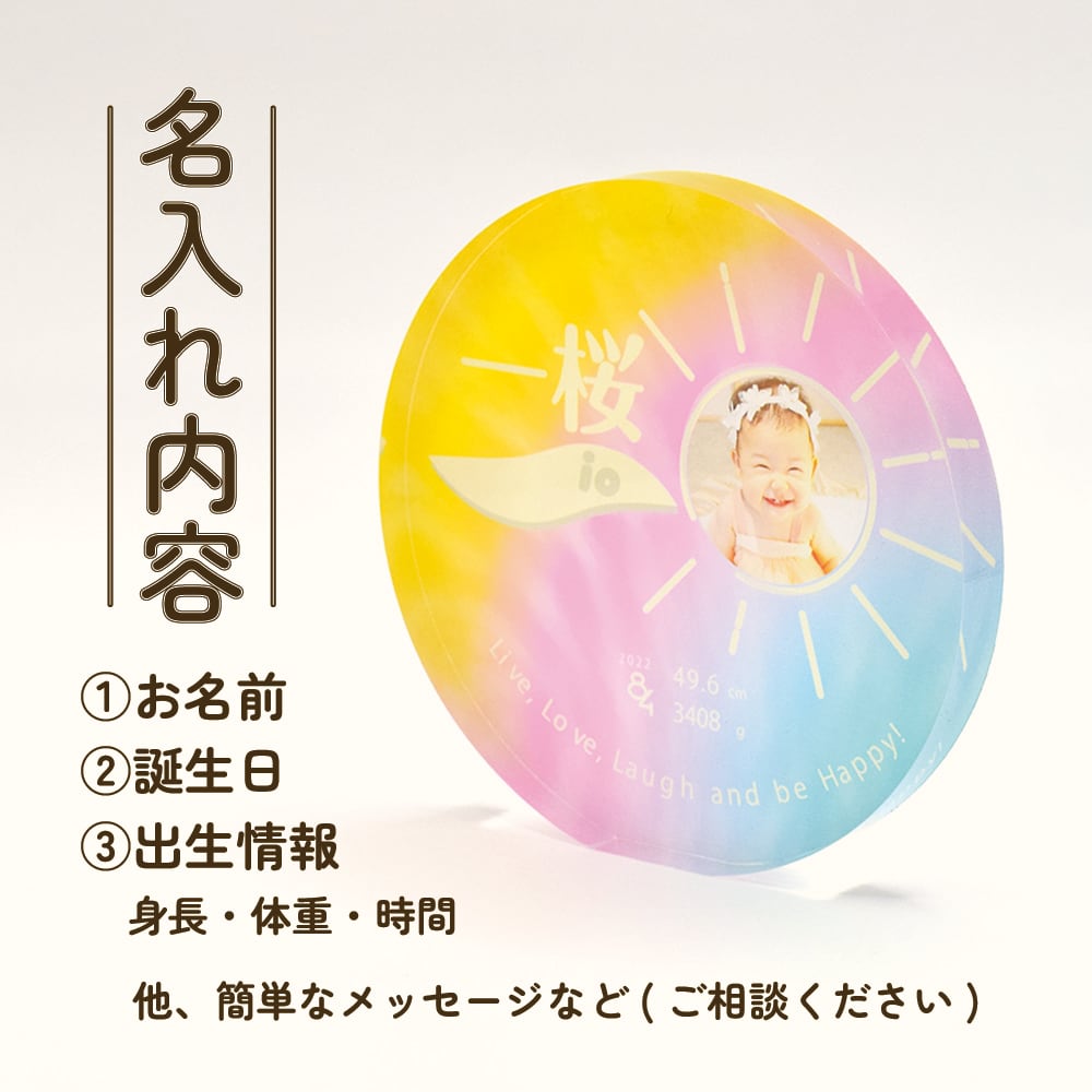 まあるい形が珍しい、まるでアートのような、アクリル素材の命名書サークル。